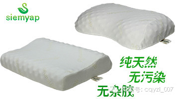 泰国三大支柱产业之一:乳胶。乳胶枕头整个泰国每天产量不到一千只,难产!!!siemyap是泰国乳胶制品排名前三的老品牌,含乳胶量最高了,目前很多国内杂牌都是掺了杂胶的或者是贴牌的,所以要认准品牌哦。乳胶枕头的最大好处是够天然环保,可以治疗颈椎病,有防螨,促进睡眠的特殊功效,欧美地区30年前就流行了! 怎么区分真假呢?闻:掺胶的枕头味道很刺鼻,闻久了会头晕,气味对人体有害的,因为放了香精,真正的纯乳胶枕头是淡淡乳香味的,类似于豆奶的味道,很好闻的哦,有想吃掉的感觉,真正纯乳胶枕头不便宜,属轻奢侈品,但是为了家人健康,值得购买,可以保用十年以上呢!