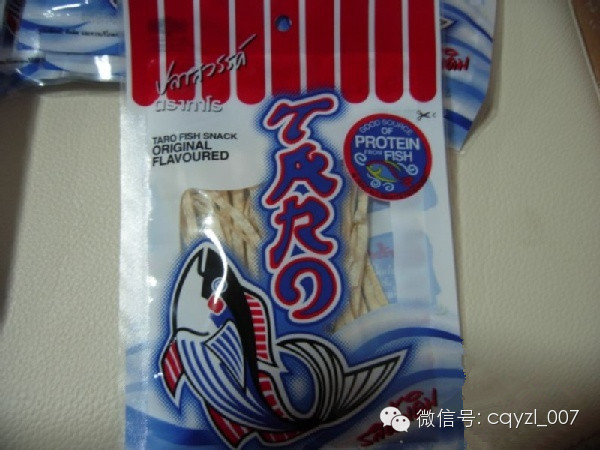 在泰国,也有一款家喻户晓的鳕鱼香丝,那就是TARO!不管你去各大商场、7-11、杂货店等,都一定会发现它的踪迹,而且还不只出一种口味而已喔,有原味、辣味、BBQ、韩式烧肉、泰式沙拉等等,完全把泰国人爱丰富口味的精神发挥到极致。中包装的TARO一包售价约18-20泰币。