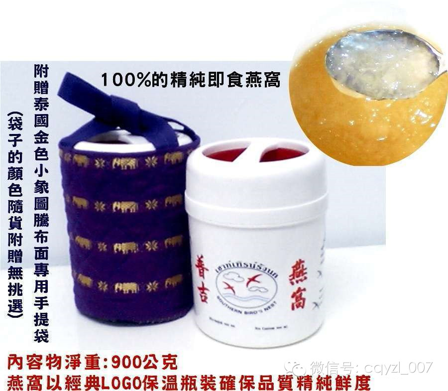 被誉为“大海的白色黄金”的泰国燕窝,因公认其为具有高营养价值和美味可口的天然保健品而走俏海内外。泰国是为数不多的几个燕窝出口国之一,其国际市场上的主要竞争对手国为印度尼西亚和马来西亚。过去三年来,泰国的燕窝出口呈持续增长态势,从2004年的三千六百多万泰铢增加到2010年的三点二亿多泰铢。泰国燕窝是很值得拥有的好东东!它可以润肺,对于我们这些每天都要“喂人民服雾”的国人来说是很有必要带回来的。