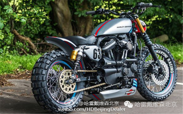 为了纪念Martini诞辰,改装厂 SHAW SPEED定制了特别版的哈雷XL883R——除了发动机更换为Screamin Eagle特别调校过的1200cc引擎(缸头和活塞全部更换),前叉和后减震全部更换为Öhlins金色套装。此外,挡泥板、刹车碟片、油箱及轮胎也都全部量身打造。