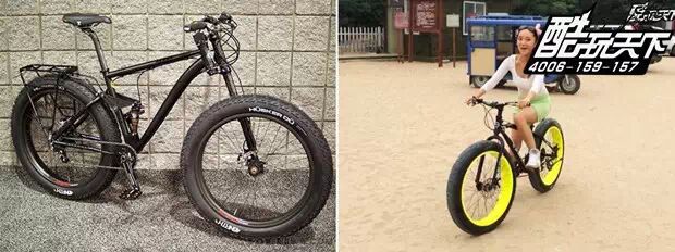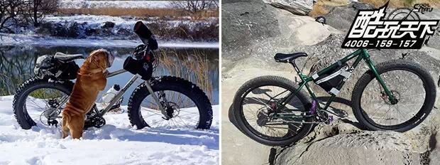 其实胖胎车在最初的几年并没有实质性的发展,但是拜全球暖化所赐,从2011年开始,寒带地区的冬天时间加长夏天变短,胖胎车市场的需求突然大增,于是胖胎车终于在诞生7年后,引发了新一轮的流行趋势。新车种的诞生让品牌厂商跃跃欲试,技术和设计上的进步,加上大牌厂商的加入让胖胎车快速进入大众视野。 胖胎车最初为雪地骑乘设计,但很就受到不少探险家的青睐,部分自行车手也会将胖胎车用于冬季训练。超大外胎创造了巨大的抓地面积,能够在光滑或松散的表面自由行进。胖胎车比普通的车款重,机动性和行进速度 都比较差,但速度并不是这个车种的重点。巨大的轮胎空气容量相对降低了胎压,巨大的“气垫”造就了强大的通过性,让胖胎车在雪地、沙地、泥地、林地和岩石地形中自如通行。 巨大的轮胎带来了超强的通过性 职业探险家Mike Curiak已经使用骑胖胎车骑行了上千英里,并且计划在今年夏天在西北通道完成一次700英里的旅行,“FATBIKE带我去一些人迹罕至的地方,普通的自行车根本不可能到达。”但是对于日常通勤大家不 要抱太大希望,Curiak同时表示,自己从来没有考虑会将这款车用于常规道路。“随便什么硬尾车架配一个避震前叉在常规道路上骑都比这个好的多。”宽胎面带来的巨大胎阻也使胖胎车在常规环境下的使用受到了局限 。 探险家热衷于使用胖胎车进行户外探险,其他车种望尘莫及的特殊环境正是胖子们发挥优势的地方最新的胖胎车使用单齿盘传动系统,甚至加入了单肩避震和连杆避震系统,科技含量越来越高如今的胖胎车技术发展日渐成熟,很多细节上的技术问题得到了比较好的解决,比如单盘传动系统(1×11速)提供了宽大的齿比范围,省去了前拨可以有效防止冰雪阻塞。车架的几何设计也得到了改善,骑乘的操控性更好。新的车款在减重反面也做了不少努力,最新推出的胖胎车,使用了碳纤轮圈,将整车重量控制在了10kg以内。 尽管如此,这些胖子们还是受到了不少青睐,并成功延长了北美地区的骑行运动时长,在北美一些城镇的积雪路面,胖胎车成了最新潮的越野工具。车店里也经常能看到胖胎车的身影,这样的氛围吸引了越来越多的车友 加入其中。其实对于普通民众,即使在城市路面上骑乘胖胎车,也可以达到很好的健身效果,更短的时间内消耗更多的能量,“健身车”成为了新一轮的宣传买点。 运动自行车产业发展至今,更多好玩、新奇的设计层出不穷,酷玩天下也将更多的越野玩具带给大家。请及时关注酷玩天下淘宝店!