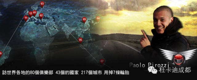 那 不勒斯杜卡迪梦想俱乐部会长说他是一名以“重型摩托车骑手” 为职业的人,他的生活和工作完全围绕在摩托车上,不论是日常旅行或是他的著名冒险都体现出他对杜卡迪的热情。Paolo已经驾着他的杜卡迪行驶超过 450,000公里(280,000英里),包括他最近环游世界的梦想之旅,并拜访坐落于世界各地80个DOC俱乐部。