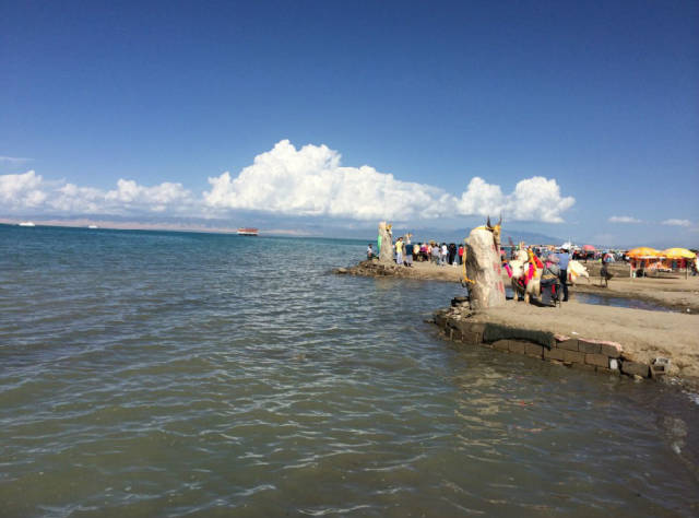 粗犷的远山紧紧拥抱着宁静的湖水,成群的牦牛、山羊沿着蜿蜒的湖岸线吃草。阳光下,湖面折射出不同颜色的波光。蓝、绿交错,就在这光影的变幻中不知名的飞鸟 穿梭其间,时而在湖面滑翔,时而在水上悠游。湖边,五彩的经幡、高高堆砌的玛尼石不时闯入眼帘。这是天堂遗落的一滴泪,却成就了人间最美的风景!金灿灿的 油菜花、碧色的湖水、蓝天白云,忘记一切烦恼吧。深深的呼吸,带走了一片海,却带不走一抹蓝,要拿什么来爱你?心中的青海湖我们朝你而来。