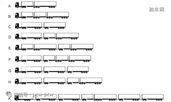 这张图说明了公路列车的不同级别,G是比较常见的规格。 当然,在其他国家也有载货拖车,但是像澳洲公路火车这么长的实属罕见,尤其在西澳(Western Australia)和北领地 (Northern Territory)的公路上,会不时有机会与这样巨大的公路火车相遇。 澳大利亚布里斯班的约翰·亚特金森,为了打破世界纪录,驾驶他的麦克(Mack)货车,牵引了112个拖车,总长度达到了1474米,是迄今为止最长的公路列车。
