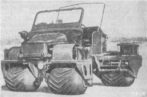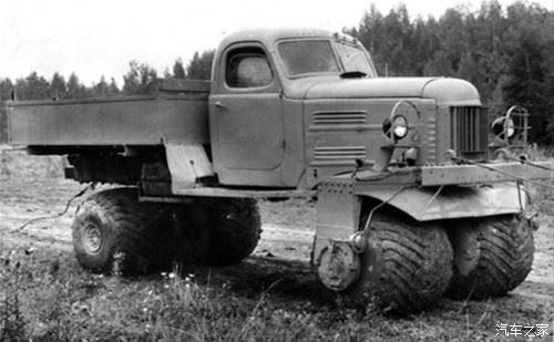 是的,这种轮胎的特性肯定会引起对通过性有着变态追求的老毛子的关注。不知道他们是引进的技术还是偷窥山寨来的,反正他们也弄出了下面这些怪物东西。这里只简单跑下题,老毛子对这个东西的研究和制造的怪物简直可以另开一贴专门讨论了。1958年在嘎斯69基础上改造的MVTu-2(МВТУ-2)。用那个和北京212血缘深厚的嘎斯69改的,已经改得连它妈都不认识了。