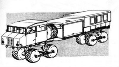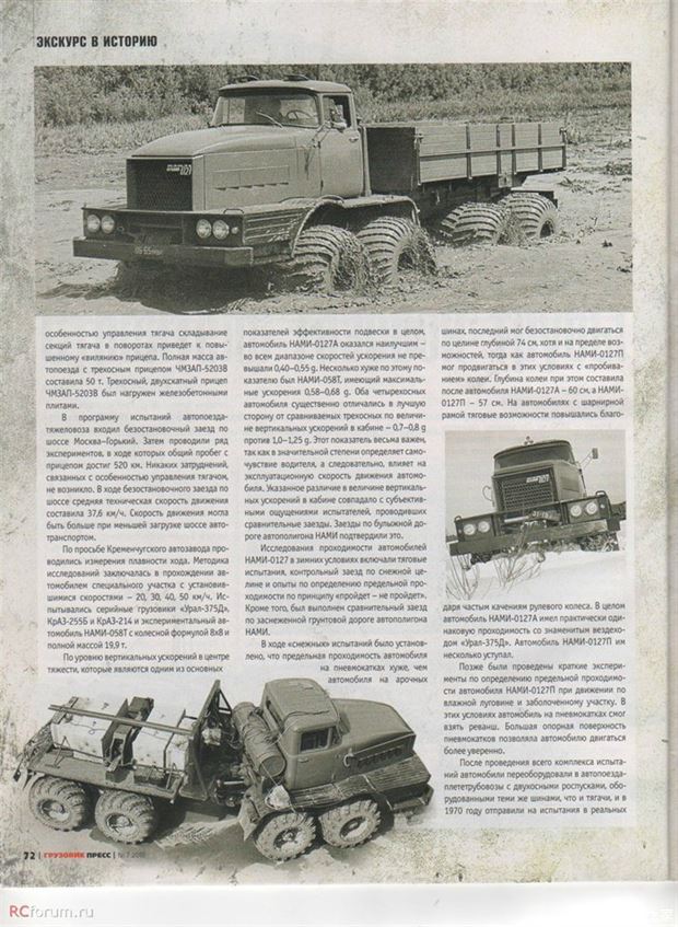 НАМИ-0127,铰接式车身。在笔者看来,老毛子们的改装风格与原型车的设计理念已经有了质的变化。原型车的悬架采用介于独立与非独立的架构,而老毛子对于乌拉尔系列系列的改进更多的是在采用更狂更大的轮胎,以便在春季路面翻浆的西伯利亚地区执行勤务。