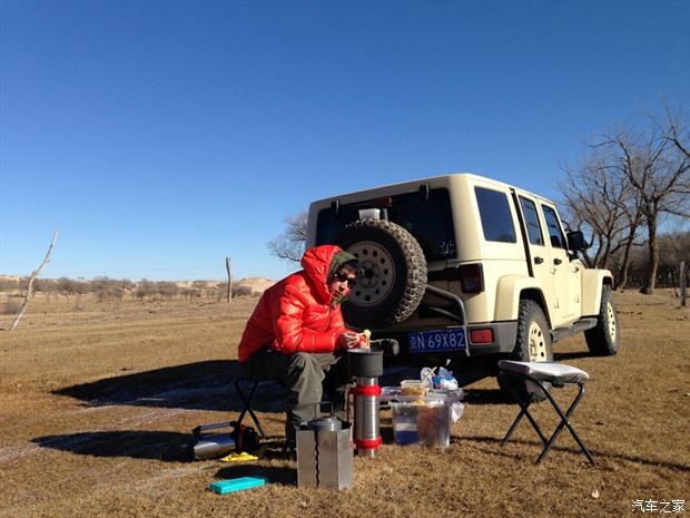 缩在被子中享受着暖暖阳光,终于身上能感觉到一丝丝热气了,看看LD,不容易啊,跟着我吃苦啦,早上8点,起床后喝了点热水洗漱一下立刻出发,不是不饿,此时开车为了更快的让身体恢复热量,车子热了,暖风有了,吃饭的条件也就具备了,十点左右,找到一片开阔地,晒着阳光,煮了白菜牛肉泡面,又烧了两壶开水,这下,晚上再露营又有开水喝啦。