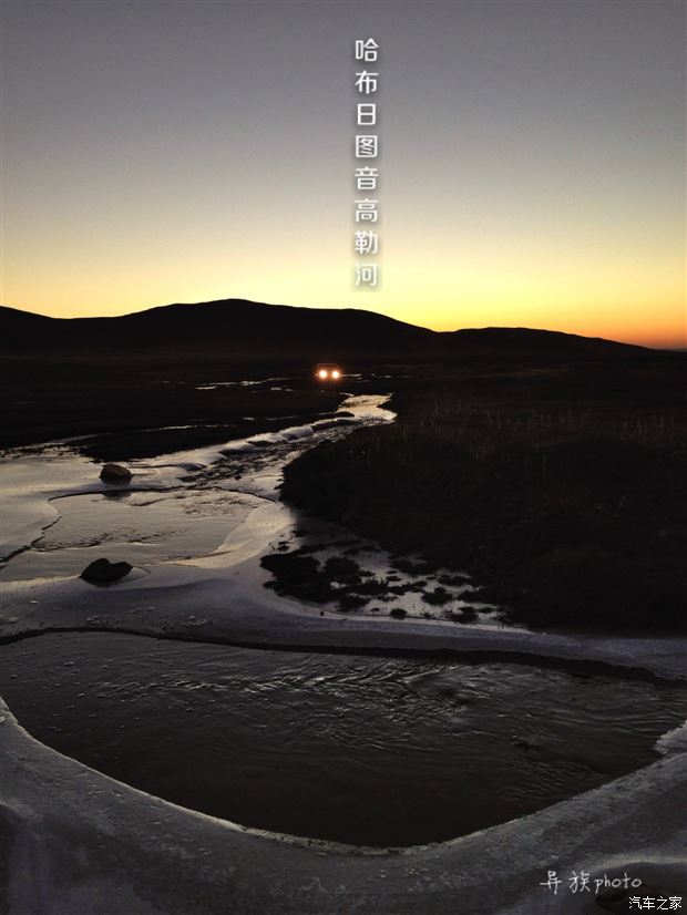 经过一夜休整,睡到自然醒,体力满血复活,上午跟LD商量计划去乌兰察布火山捡石头,由于昨天在路上已经捡了几块喜欢的戈壁玛瑙,加上国道207景色实在一般,开到苏尼特右旗后,临时决定,一路向东又回浑善达克沙地,LD这个决定伟大正确,走小路风景立刻变的漂亮起来,下午四点左右刚好到了白旗附近的一条名叫哈不日土音高勒河边,决定原地边吃点东西等待夕阳,果然, 当残阳如血日落西山时,弯曲的河水与周围初冬的冰雪呈现出一幅幅绝美画面。 拍完照片,原本还想露营,一看时间,刚好可以慢慢开回北京,我的车是双号,算算夜里12点就能进城啦,此时也归心似箭,说到限号,夜里十点半到达北京与河北交界的官厅服务区,停车场居然停了一排小汽车,仔细看,全是京牌还都是双号,哈哈哈,同道中人不少啊,虽然有些无奈,但这好似中奖一般的几天假期,给生活带来足够多的惊喜, 真诚的希望,下次APEC蓝犹如习大大承诺的那样,不是短暂的,而要变成常态啦。