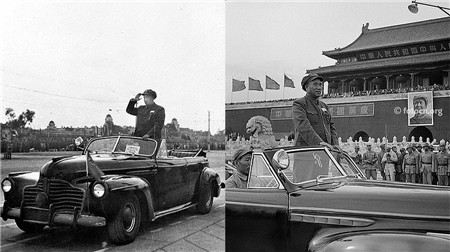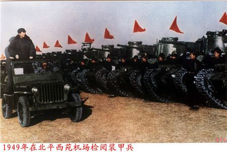 1949年3月25日阅兵车是美式吉普 1949年3月25日, 中共中央、人民解放军总部机关由河北省平山县西柏坡移到北平。 下午5时,中共中央在北平西苑机场举行了盛大的阅兵式。 当时我国还没有能力生产汽车,毛泽东、周恩来等当时的中央领导同志所乘坐的也全都是从敌人那里缴获的美式吉普检阅三军。