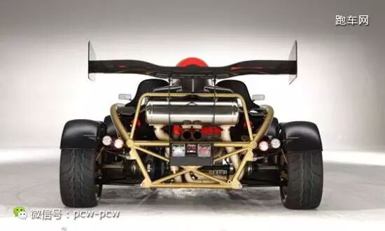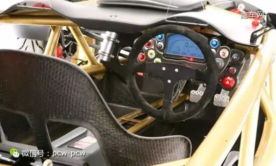 Ariel Atom 500 V8的车轮是极具传统色彩的黄色,崭新的碳素发动机外壳,车身两旁配有盛装机油散热器、空气压缩机的装置,在发动机舱附近有标准的管子式桁架。