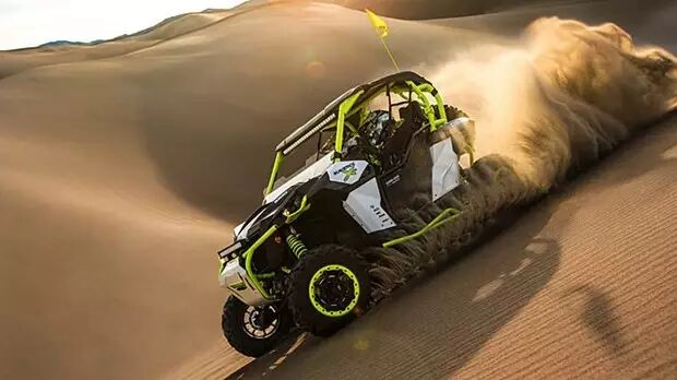详解121 2015款 Can-Am独行侠1000R XDS采用装有涡轮增压的V型双缸发动机,马力由之前的101直抵121,成为整个行业的先锋车型!不仅动力方面,独行侠XDS车系全面升级:新的高速流进气系统、唐纳森涡轮、CVT与快速反应系统(QRS)和改进的通风系统。种种改良的高科技运用,让 Can-Am成为万人期待的热门亮点。电子控制的排气泄压阀能够自动调整进气压力,为发动机的高效工作服务,在海拔5000英尺的高原地带也能正常工作。中冷器采用内置风扇技术,在苛刻的工作条件下也能保持冷却空气在引擎流动。新的低压锻造活塞提高了引擎的耐用性和可靠性,新的高容量喷油系统给独行侠提供最佳的空气/燃料混合物,将其性能发挥到极致。