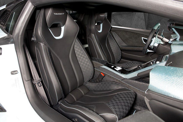 Huracan原厂搭载5.2升V10引擎,经过Mansory重建,更换活塞、连赶、曲轴、凸轮轴、冷却系统以及燃油系统,会升级那么多东西目的是要安装涡轮增压系统,强化引擎内部与散热系统,就是要使引擎能有原厂般的耐用度。安装涡轮后,除多了进气冷却器外,排气管的位置及走向都由手工修改,因此排气声浪比起原厂更高亢。经过重新调校后,最大马力有1000hp,最大扭力被计算机限制在101.97kgm。轮胎要扛起与路面的搏斗胜算,尺寸升级前245/30R20,后325/25R21规格。四轮驱动设定,静止加速到100km/h只要2.7秒,极速高达340km/h。