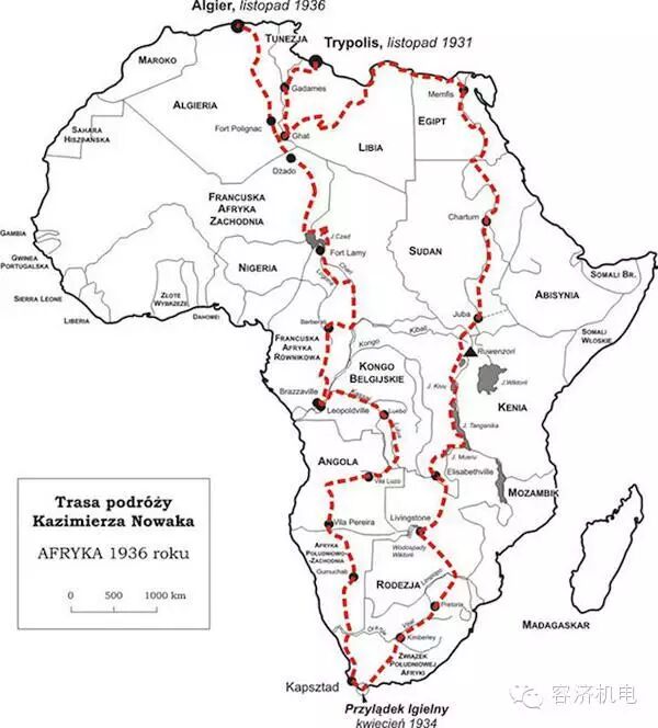 1928年,Nowak先是去拜访了北非,当时那里正历经战争。由于受健康问题和资金短缺的影响,Nowak最终被迫返回波兰。也正是这一次旅途的受挫,让他暗下决心,终有一天要骑车从北到南横穿非洲。