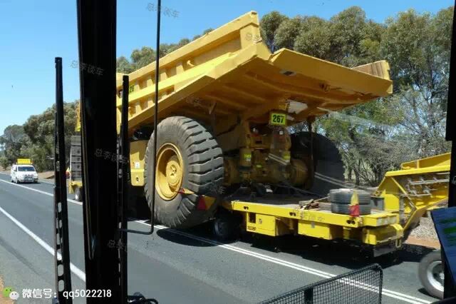 重卡卡车只能运输巨型卡车的一个翻斗,卡特797F拆卸运输,多数因为途中有桥梁,只能拆卸后运输,运输到指定地点,然后由专业人员组装!这车组装都是团队协作,加上2辆吊车!