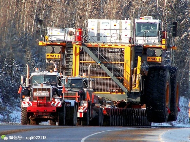 像这样的小型号自重都在百吨以上,这样的运输是考虑油耗,这种车自行上路,百公里油耗都在500升以上!