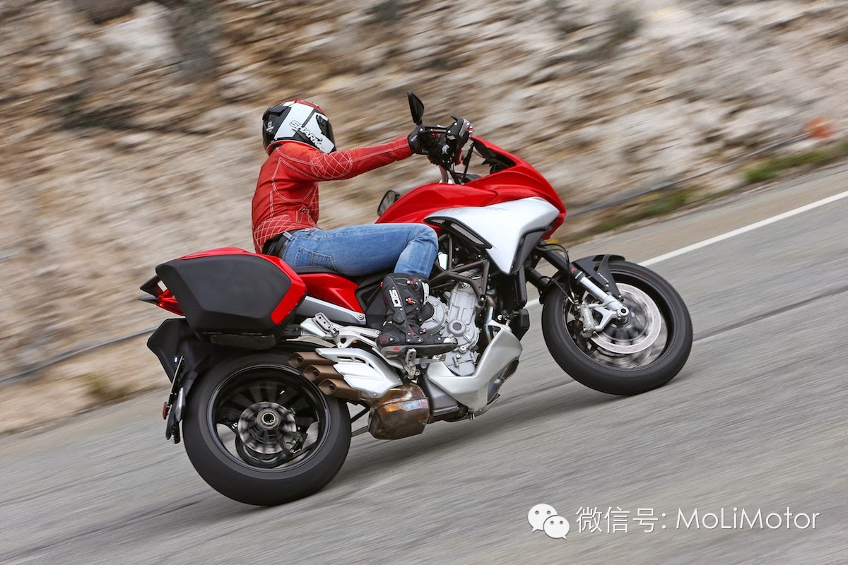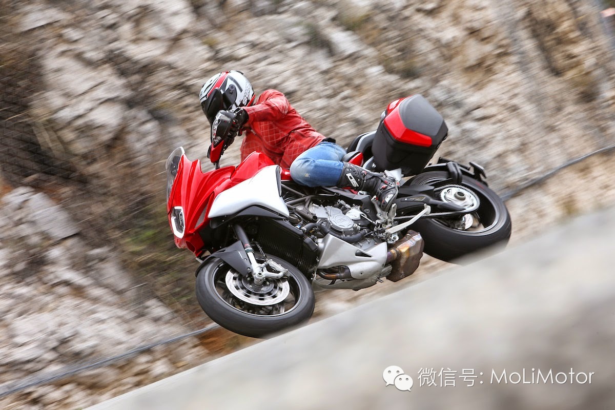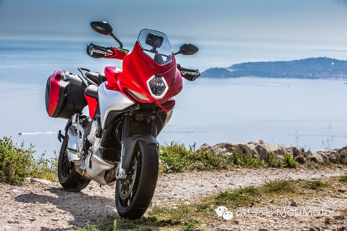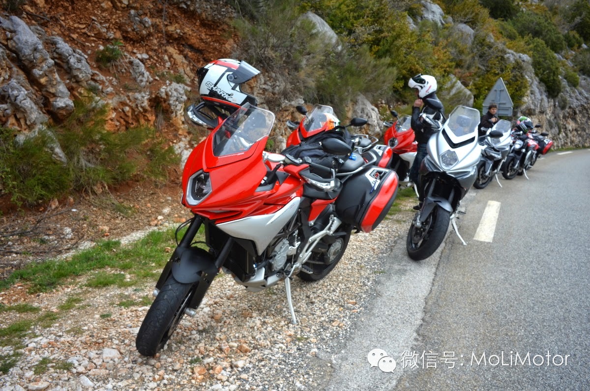 MV AGUSTA 2009年来积极拓展产品线,从原本直四引擎的F4 Brutale 车系,开发新的直列三缸引擎平台,除了应用在原有的跑车与街车款之外,三缸800cc 引擎更开发新的滑胎车款Rivale在2013年底的EICMA 车展,MV首次跨入Touring 旅行车款领域,发表搭载三缸800cc 引擎的TURISMO VELOCE 800 以及TURISMO VELOCE LUSSO 800(电子悬吊进阶版)。站长目前来到法国南部尼斯,参与全球媒体发表、试乘会,与大家第一手实时分享这台MV AGUSTA 的跨界新车款!