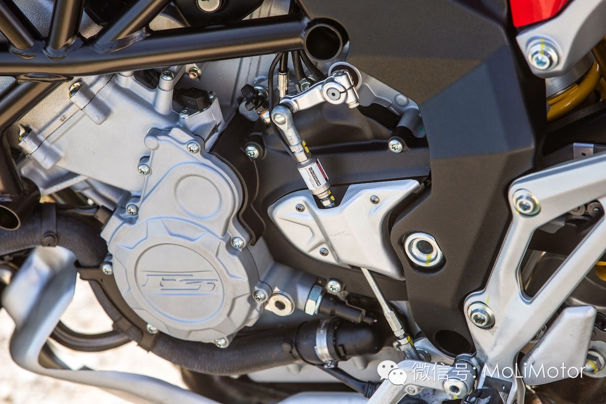 • 引擎动力:VELOCE 800 搭载三缸引擎,修改部分零件之后,将最大马力降至110匹马力,但中低转扭力较原本提升18%,且在3,50010,300间可输出最大扭力的95%,相当惊人!