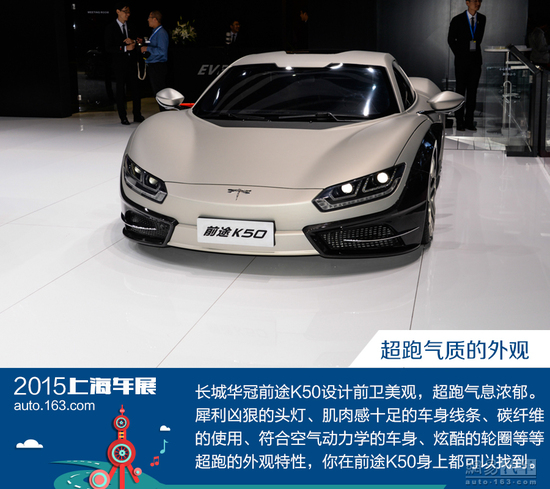 中国力量跑起来,上海车展体验前途K50 每个男人都有一个跑车梦,梦想中的跃马、梦想中的蛮牛、梦想中的蜻蜓。等等,你说什么?蜻蜓?我没有听说过蜻蜓的跑车啊!别着急,跟我去趟上海车展,随我一起去看那有着蜻蜓车标的酷炫跑车—长城华冠前途K50(以下简称K50)。K50是一款自主设计研发的跑车,而且是纯电动跑车。提起自主跑车我们想起了什么?中华酷宝、吉利利美人豹、中国龙。额,还是不要想了,我们还是一起看看真的很帅气的K50吧。
