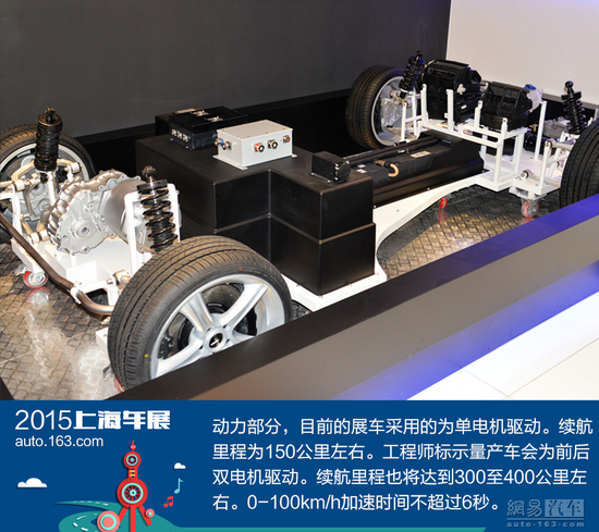 动力部分:电动跑车,驱动方式一定是电动机。展车是两驱单电机车型,设计师表示量产车将会是双电机四驱车型。0—100KM/h的加速时间不会超过6S。续航里程在300公里至400公里。