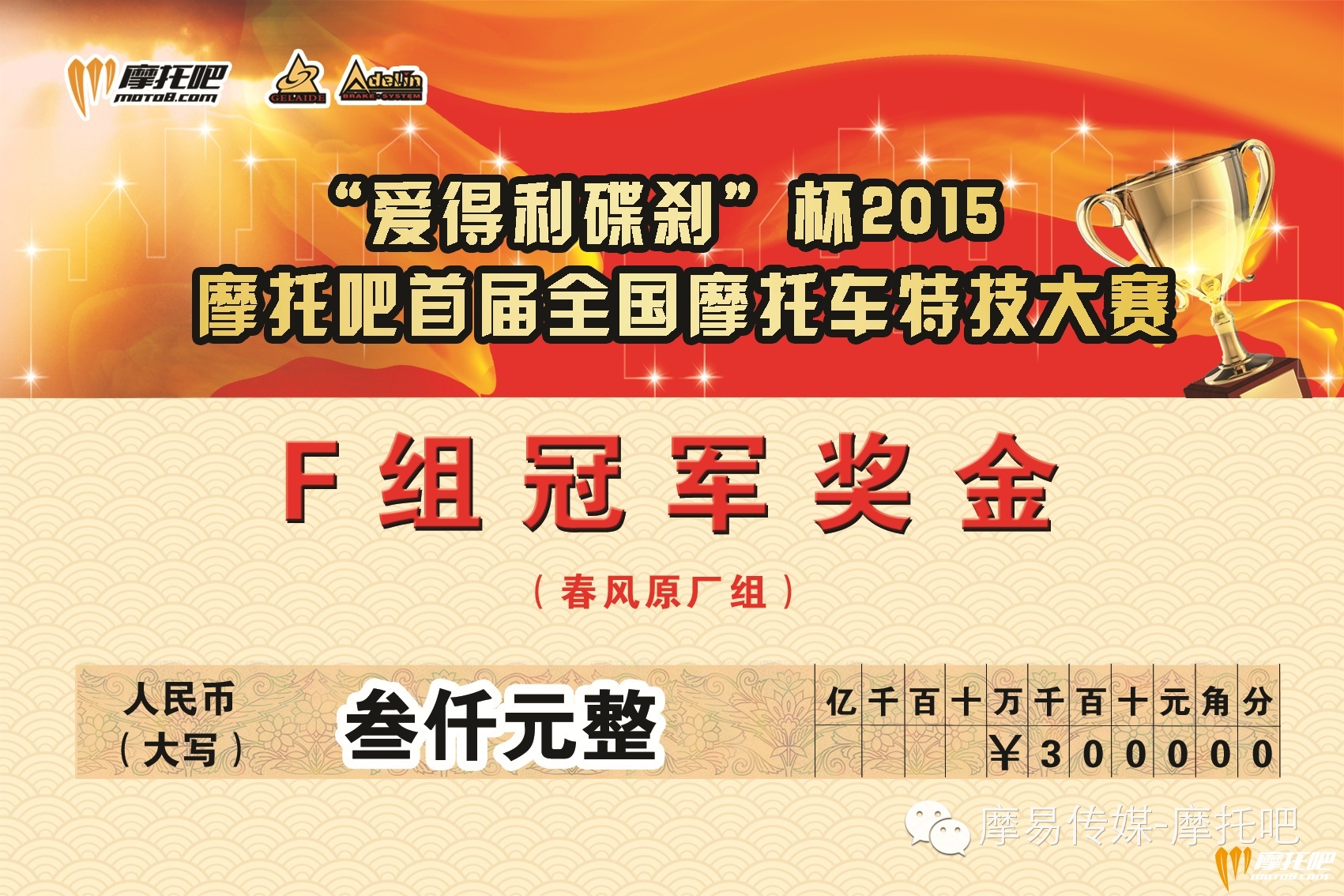 本次大赛汇聚了来自全国的摩托车特技高手,相信会为大家带来一场精彩的视觉盛宴!同时组委会也参赛车手准备了十分丰厚的奖金,由于奖项过多,在这里小编就不一一发了,先秀几组冠军给参赛车手提提神!