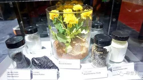 来到马牌轮胎的展台,车聚君被一盆黄色的花吸引了,问了问身边的讲解员,才知道这是用来提取橡胶的蒲公英。