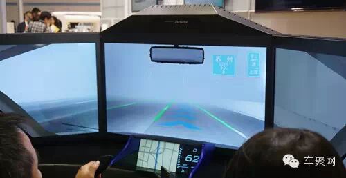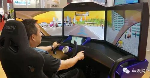 爱信的这台驾驶模拟器看着要更精致些,但它展示的驾驶辅助功能比博世少了很多,不过雾天的车道警示和路牌模拟效果还是令车聚君印象深刻,这个功能在雾霾泛滥的中国可是特别有用啊。