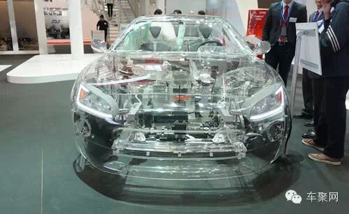 在5.2H零部件展馆,最容易吸引人眼球的当属天合展示的一辆透明汽车,不过,天合想要展示的并非透明车身,而是该公司所生产的各种汽车零部件。