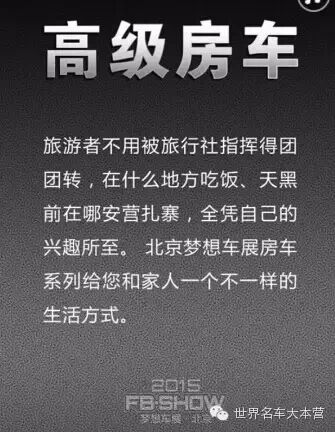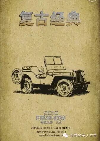 2015梦想车展FB-SHOW将于5月1日至10日在北京蟹岛国际汽车文化主题公园举行(4月30日为媒体日)。本届车展以“追逐梦想 ·引领文化 · 共创未来 ”为主题,理念和模式全面升级,不仅云集世界顶级汽车企业的经典名作,更是开创性的将全球顶级的汽车企业进行主题展示,将汽车历史、文化、科技产品进行全方位、更深层次的展现,以此推动汽车产业与文化的发展,倡导更加丰富的汽车生活方式。