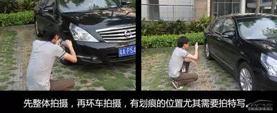 千万别以为拍一下车子刮花的部分就完事,其实取证也是有讲究的,首先你需要拍一个大的场景,最好能拍下你所租的车和验车人员,然后再拍各个刮花的细节部分。切记,大图是一定要拍的,以防后期提供图片证据时,租车公司不认账说这是你拍的其他车辆。