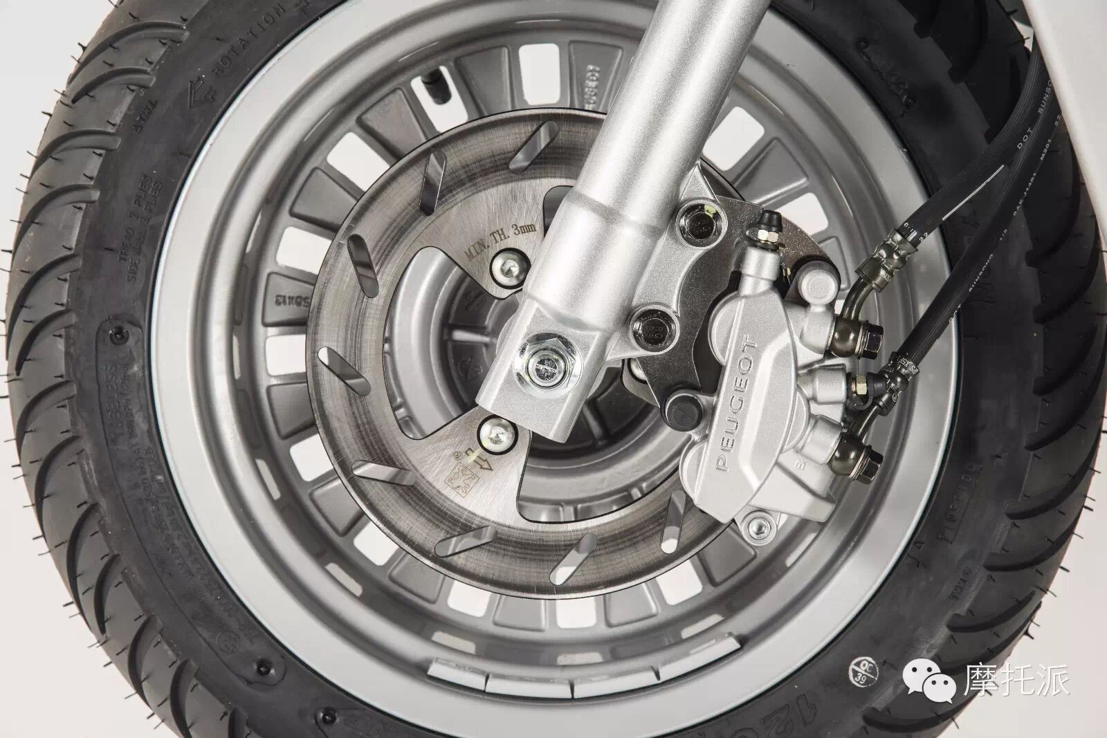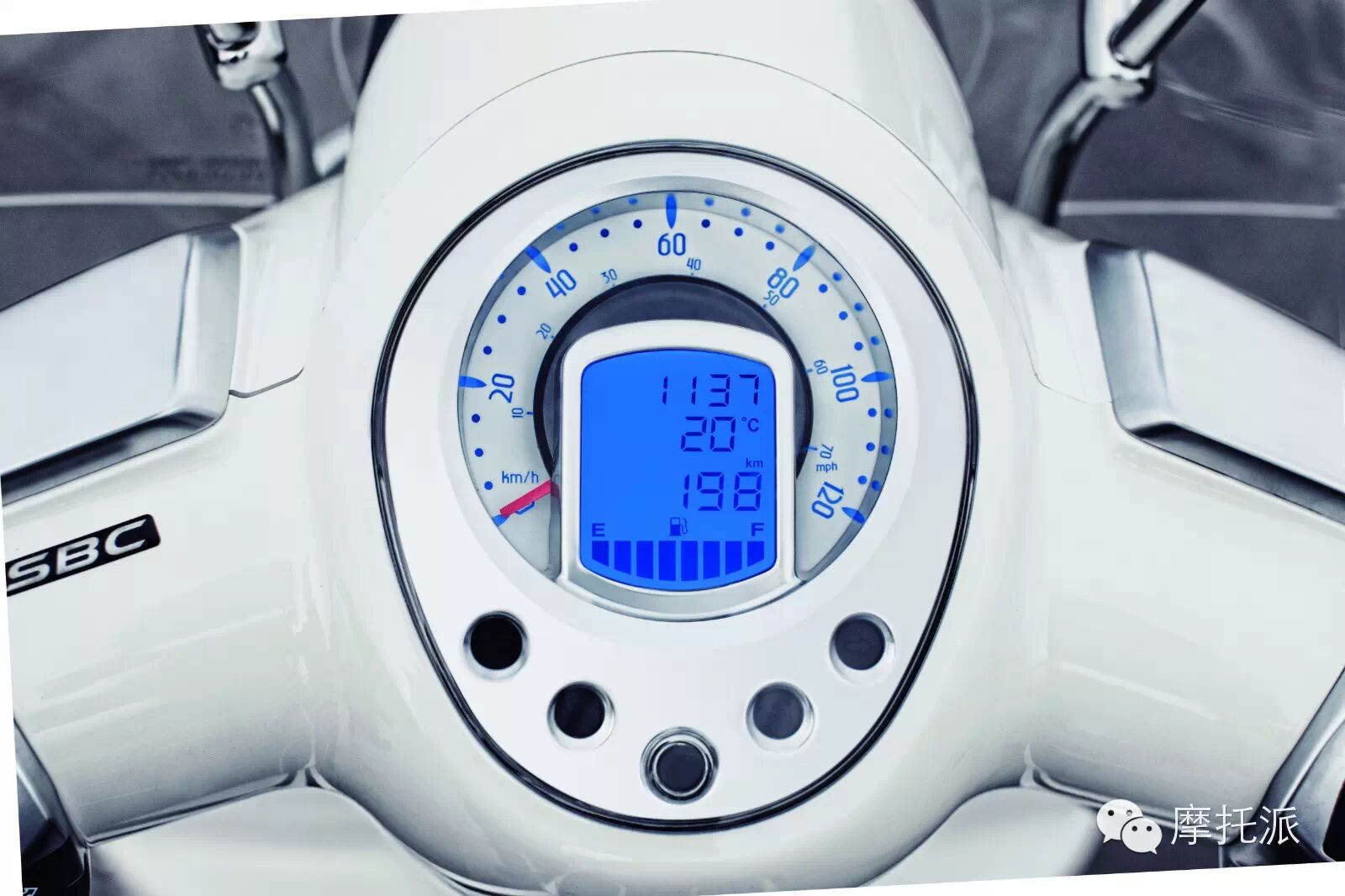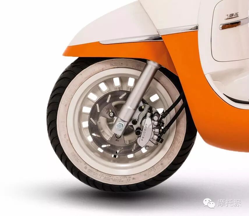 标致Django150i独有的多辐式白色、银色轮毂和白边轮胎设计使其造型更加复古,而内挡风留有两个可锁式隐形储物箱设计也是别具匠心。左侧的储物箱有加油口,右侧的储物箱配置12V充电接口,内部配置多种规格的挂钩,贴心的创意空间让人一见倾心。