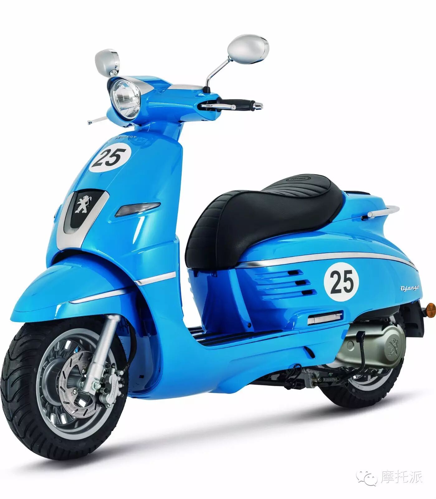 Django运动版的灵感来源于标致在顶级赛场上取得的诸多辉煌战绩。运动版车身颜色为运动韵味十足的爱琴海蓝。配置单人运动型鞍座,车身有对标致具有历史纪念意义的冠军战车编号25号码标贴图样。