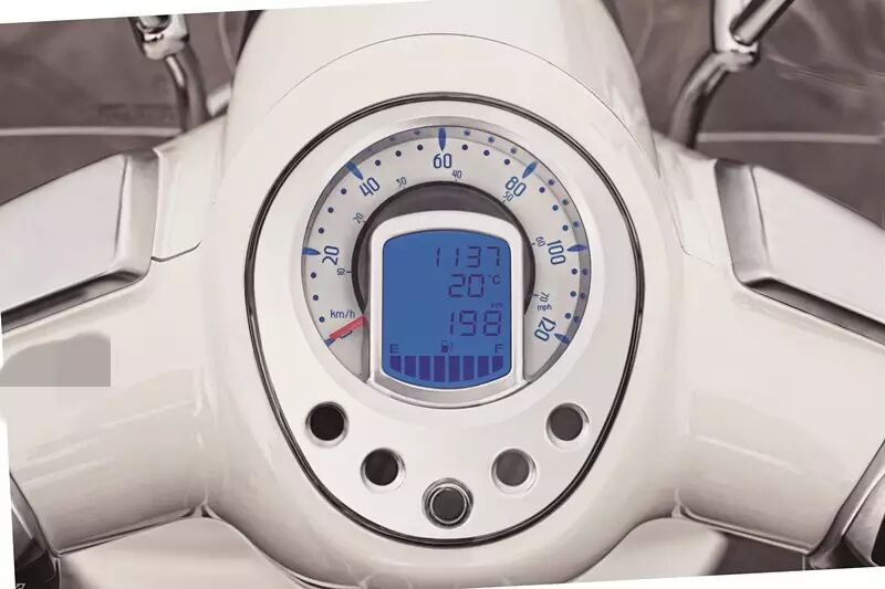 极具五十年代风格的复古仪表盘,中间镶嵌液晶数字显示屏,诱惑十足。油量、里程、时间、温度、单次里程、电池用量、保养周期提醒等诸多信息智能提示。