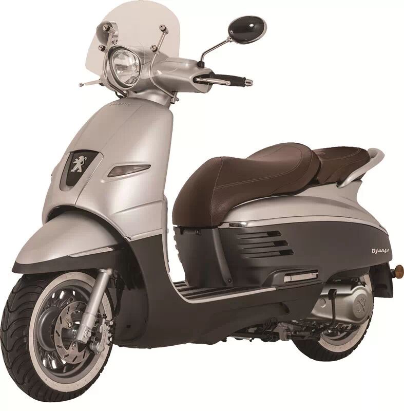 Django休闲款 闪光银/哑灰&巧克力/碳晶黑 配备的是标致多幅式铝合金轮毂,白色轮胎设计,国内唯一。造型更加复古,整车个性鲜明、独一无二。