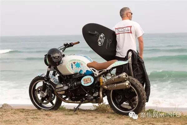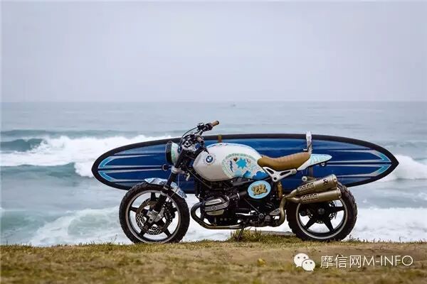 宝马也在本次Wheels&Waves上发布了由宝马R ninet为原型的定制概念摩托车:Path 22。为配合冲浪与摩托合一的主题,这辆车在右侧装上了冲浪板支架,车身贴花也采用海洋主题,名字“路径22”的含义则是:将22处人迹罕至的冲浪景点串联起来。