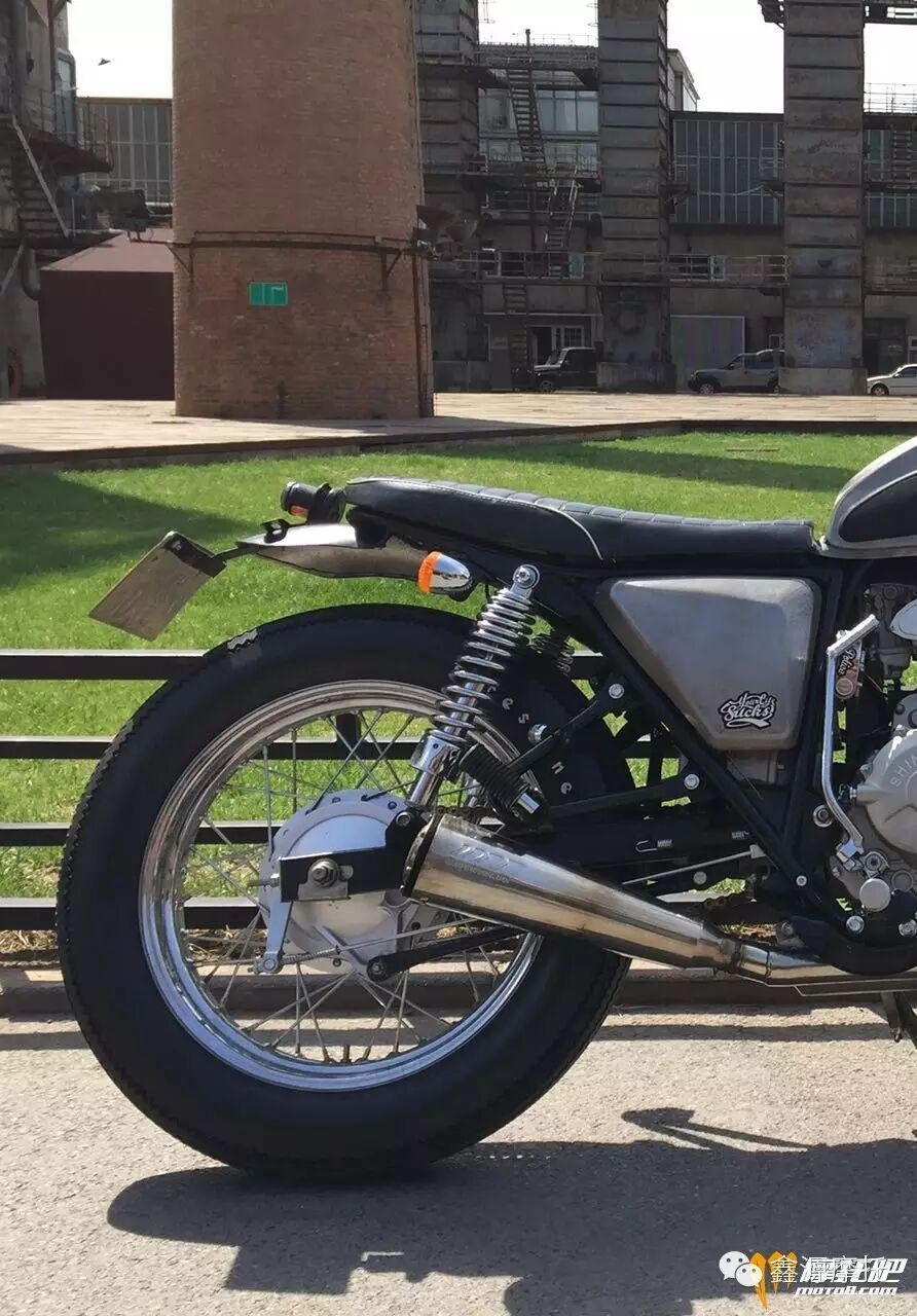 弹簧头前叉作为老式赛车的经典设计曾经风靡一时,如今终于在鑫源400上再现,该作品风格大胆,复古韵味中融入了现代审美,是非常成功的教科书式改装样例。