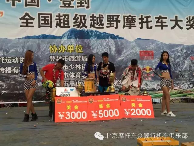 您猜站在冠军领奖台的帅哥是谁?嘿嘿。。。。偷偷告诉您一个人!!那就是项东(ps:一般人儿我不告诉他),对了就是67号(小红 本田 CRF250R)!北京众翼行机车会所长期支持本田、宝马、杜卡迪、MV奥古斯塔、川崎、雅马哈、铃木、哈雷戴维森、KTM、庞巴迪、凯旋、印第安、胜利、北极星、各类街车、跑车、巡航、太子、越野、全地形、复古、定制改装等正规进口大排量摩托车预定销售!!凡在我会所购车均享受高于大贸店优惠!!并且提供4s售后服务!!部分进口品牌摩托车享受全国联保!!