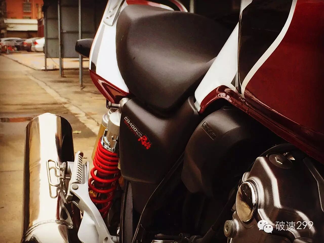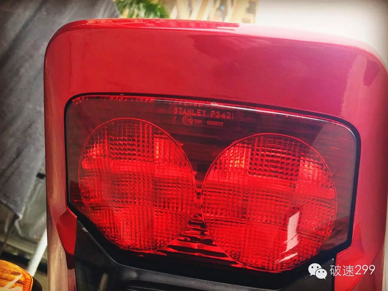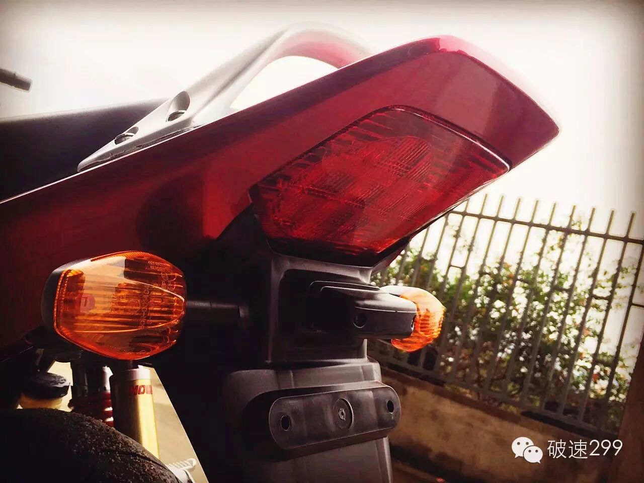 在灯具方面,它的大圆灯搭配它的黄色的转向灯,经典味十足,这个外观才是它真正的美貌,在这里不得不提的是 它的尾灯设计,它那两个火红的双圆灯,在颜色中炯炯有神,给人的非常杀的期限,这也是破速唯一可以从CB400SF身上看到杀气的地方。他的屁股实在太漂亮了........