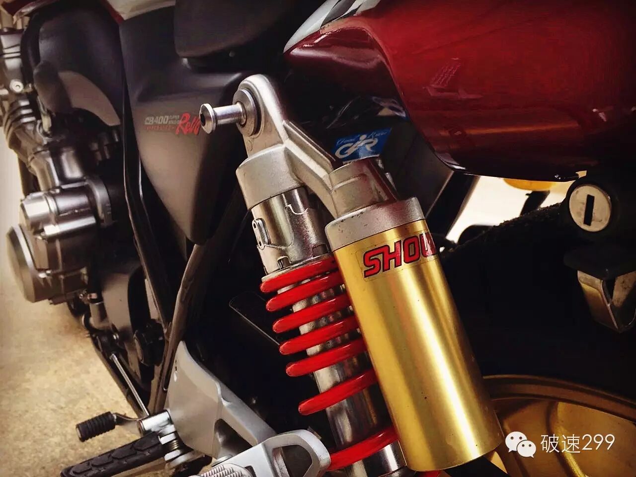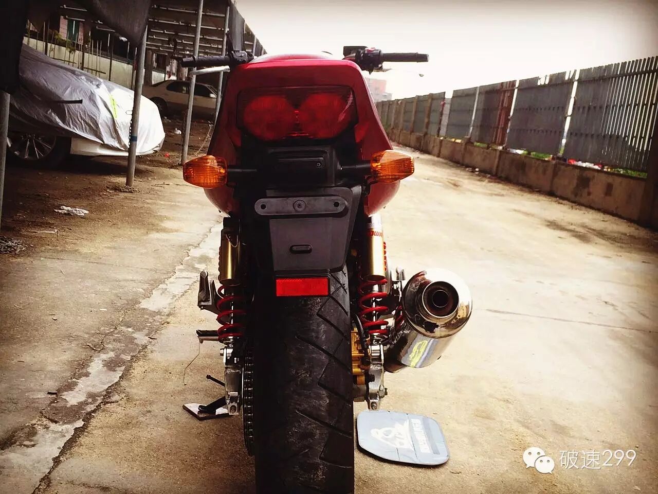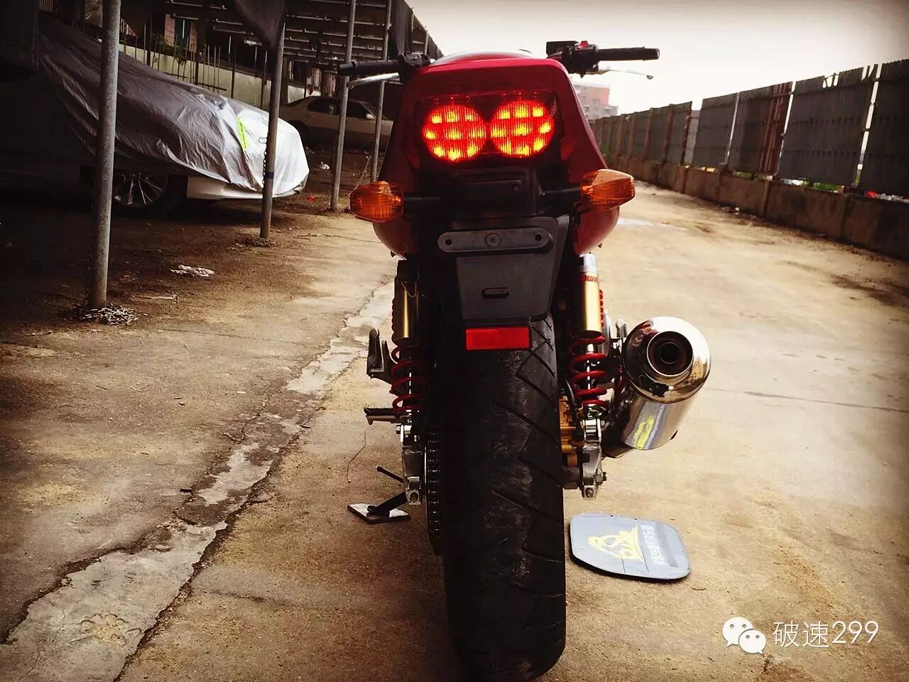 在灯具方面,它的大圆灯搭配它的黄色的转向灯,经典味十足,这个外观才是它真正的美貌,在这里不得不提的是 它的尾灯设计,它那两个火红的双圆灯,在颜色中炯炯有神,给人的非常杀的期限,这也是破速唯一可以从CB400SF身上看到杀气的地方。他的屁股实在太漂亮了........
