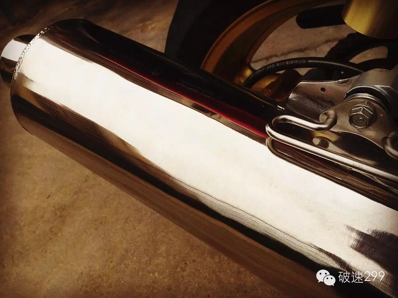 为了符合严苛的环保法规,honda重新为它设计了一根新的排气管,这根排气管可来头不小,它巧妙地吧三元催化转换装置整合进了这根排气管里面,好处是你看到这根漂亮的不锈钢制造的尾排会很赏心悦目,坏处是你更换排气管的成本提高了(你觉得怎么样)