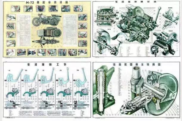 这是北京汽车厂绘制的苏联M72拆解图纸,包括车架、发动机、电气附件等等,非常详细,它最终催生了一代经典“长江750”系列,一份非常珍贵的资料。 4、为什么主车是歪的,边车是斜的。 侧三轮的结构决定了,如果要行驶的稳定性,就必须主车整体略向外侧倾斜,同时,边车前部会略微向内侧收进,相关资料在《摩托车和轻便摩托车,尺寸和质量参数的测量方法》(GB/T5373-94)的国家标准中有详细记载。