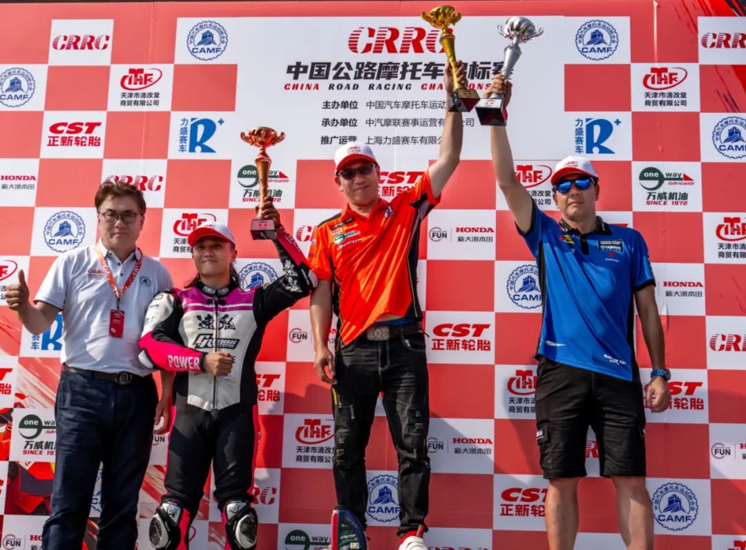 原厂400组方面,前一天排的三甲张海龙、张帅帅和南京天线赛车队的李昂,本轮仍然各就各位站上颁奖台。