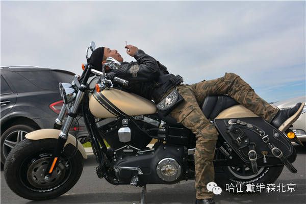 休息时躺在哈雷上抽一颗烟,褪去所有的疲倦。