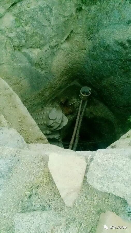 山腰中一平坦之处,有一口水井,成方形,为岩石上开凿而成,深约五六米,这就是传说中的“锁龙井”井中有一碗口粗铁链,不知通向何处,曾有好事之人拉动铁链,拉动后井内轰轰作响,井中黑水翻滚,越拉动响声越大,水随之上升。再无人敢去拉动。