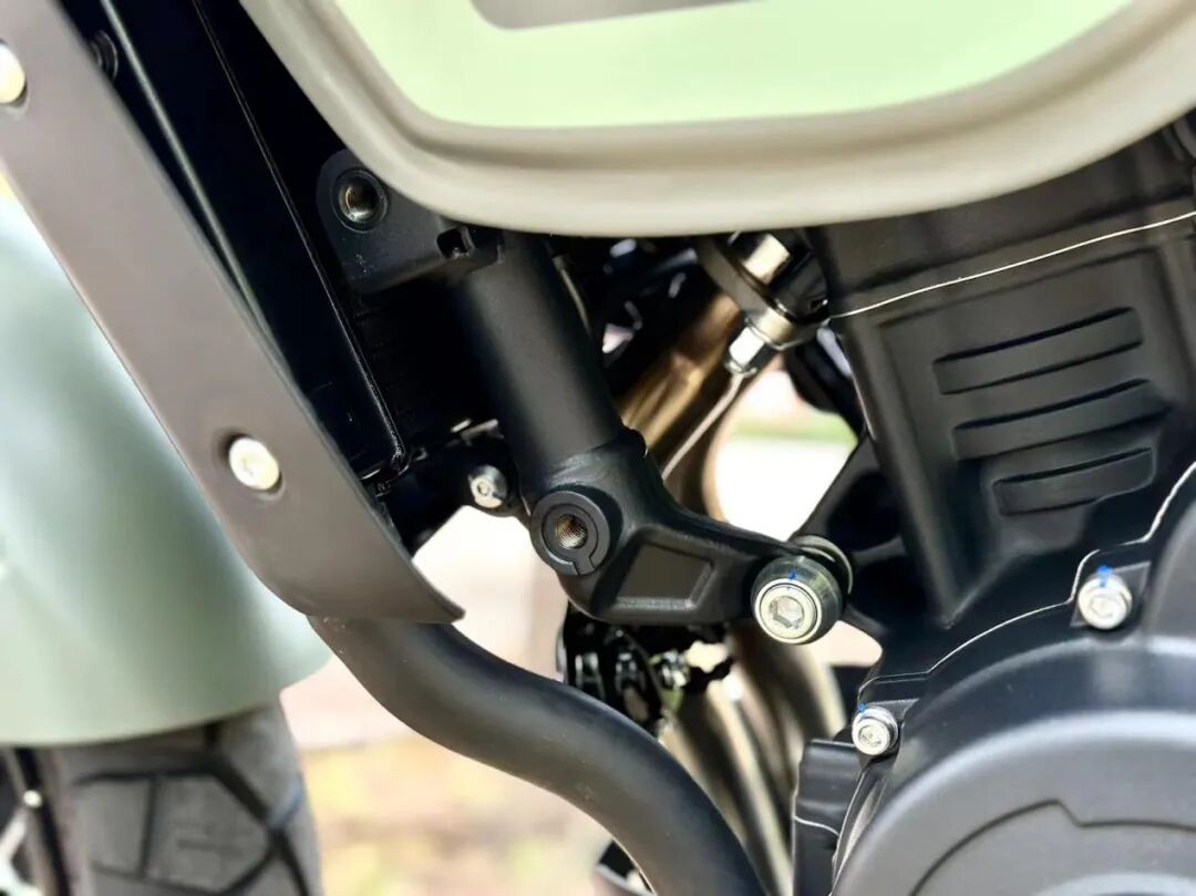 发动机的悬吊方式类似于国产本田CB400系列,让发动机成为车架的一部分。同时在车架上预留了护杠的安装点,如果能加个盖子起到防潮作用,就完美了。