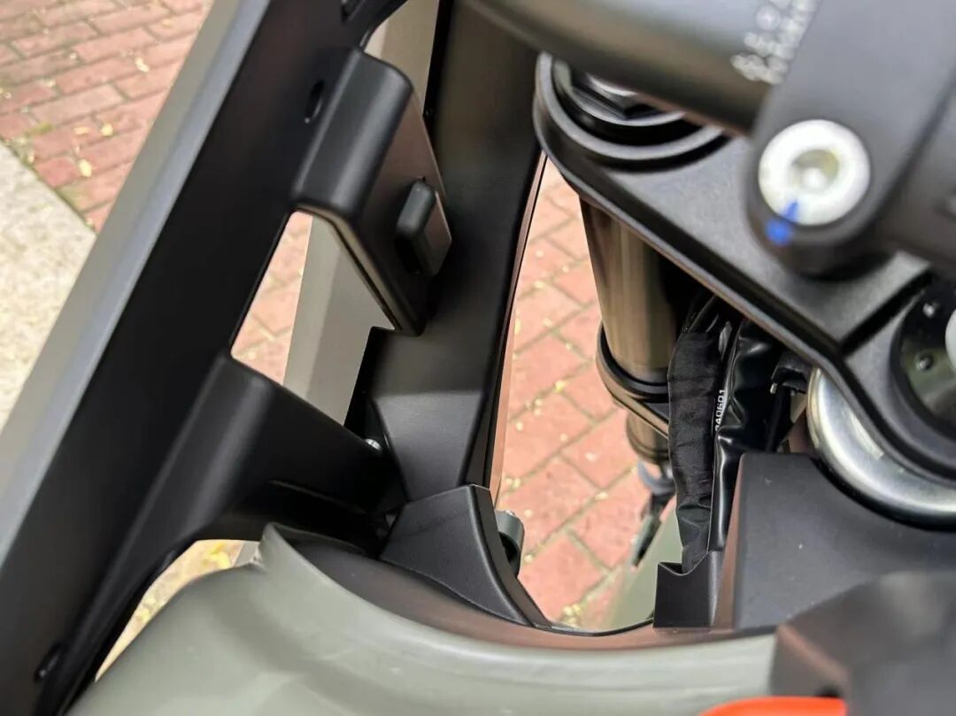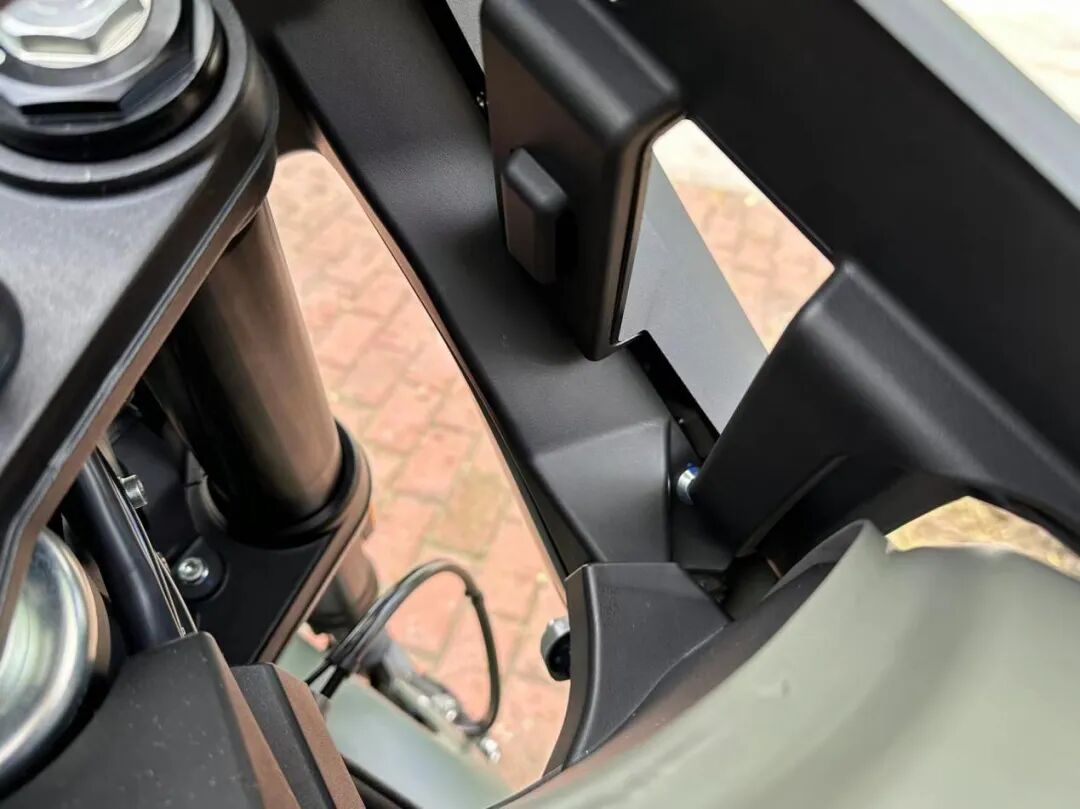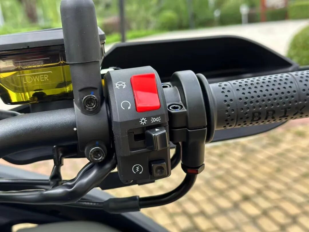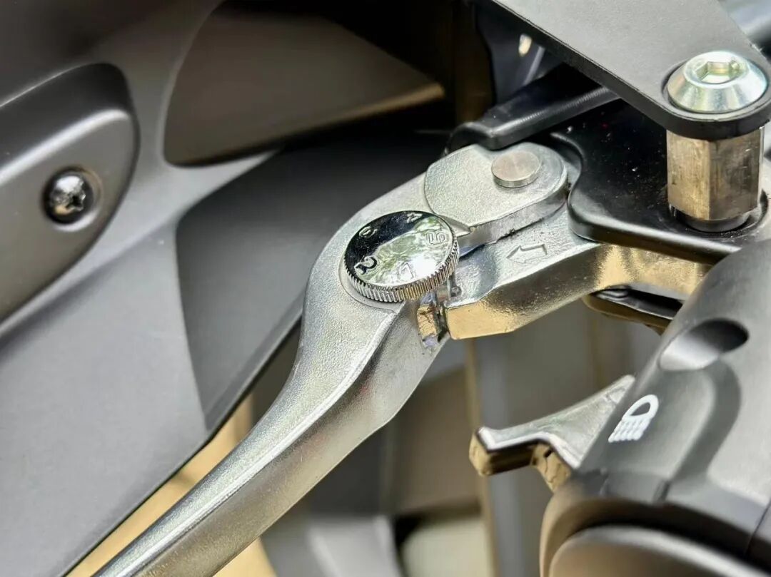 离合和刹车手柄都设计了5档简易行程调节旋钮,但感觉刹车牛角即便调到最近,我这大手捏起来还是有些远。(不排除新车缘故)