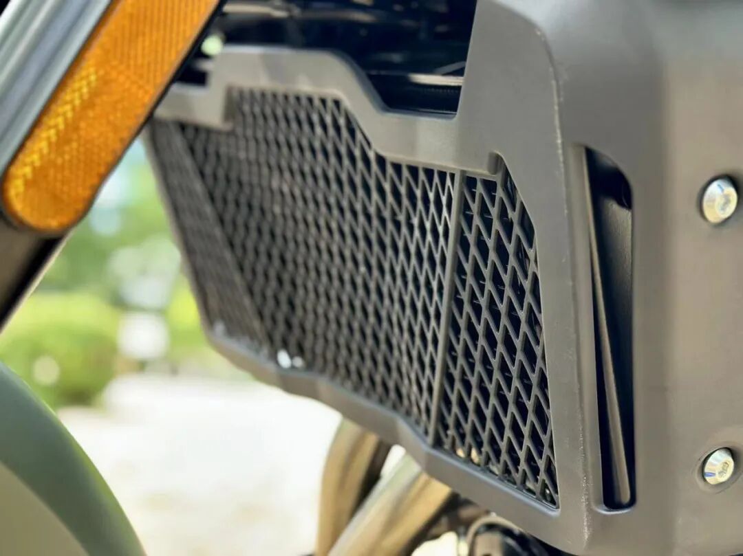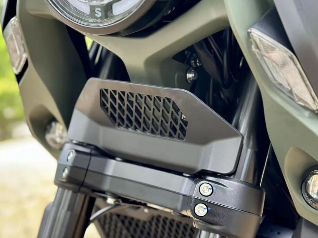 大灯下边的挡板是为了跑非铺装路面和湿滑路面时,避免泥沙从大灯后部飞溅到骑手身上,也能保证内部线路的干净整洁,真是细节决定态度。