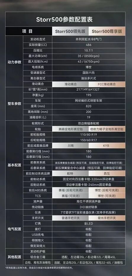 来自GK500街车上那台异步双缸发动机,运行品质和动力响应有口皆碑。实际排量486cc,最大功率35kW(47.6马力)/8500rpm,最大扭矩43Nm/6750rpm。电喷系统来自博世品牌。