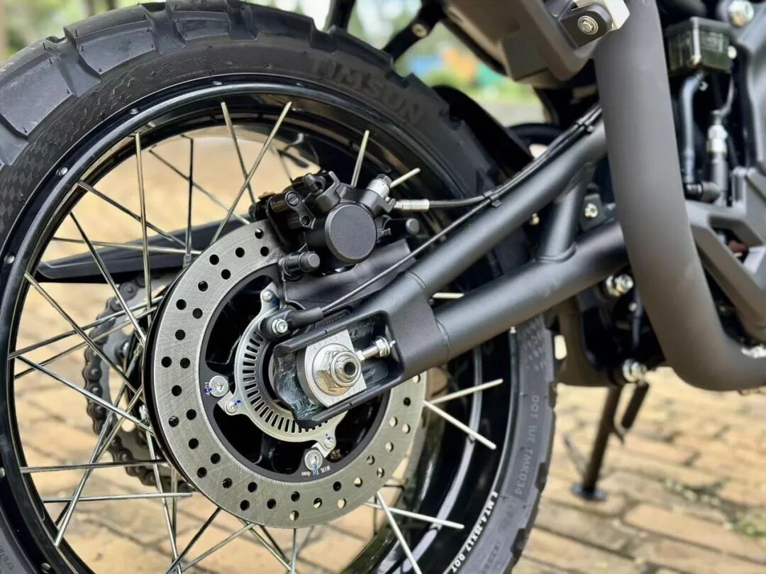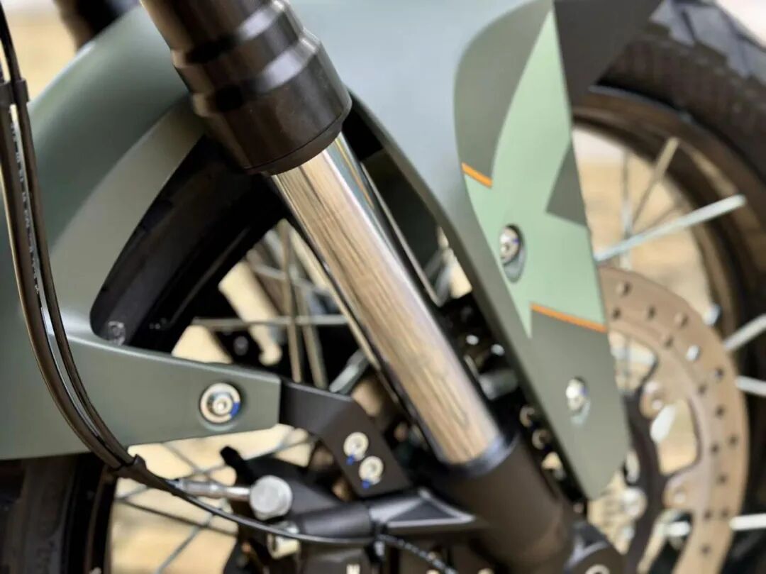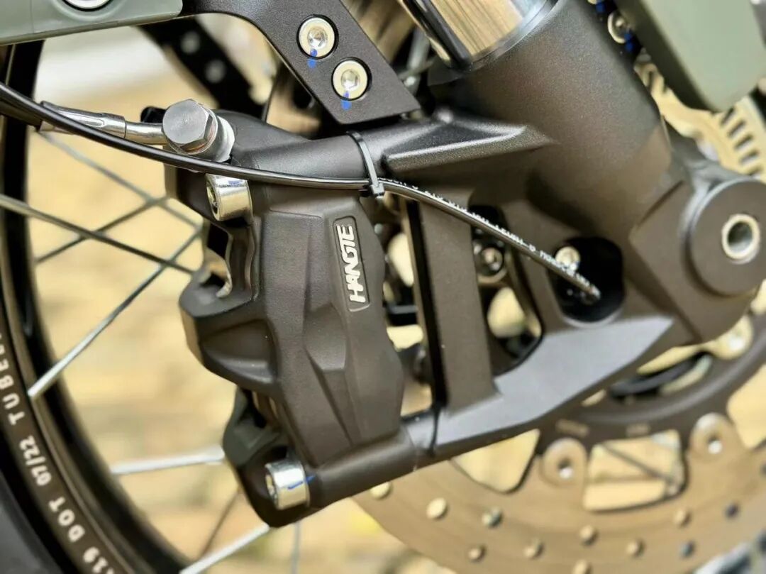 低配车型使用航特品牌提供的对向四活塞辐射卡钳,造型很精致。与同级别ADV车型相比,铁甲蛹500只提供右侧单边刹车系统。由于车辆未获得上路资格,只能在简短的封闭道路体验,无明显强弱之分,不过降低的簧下质量让车头确实灵活很多。