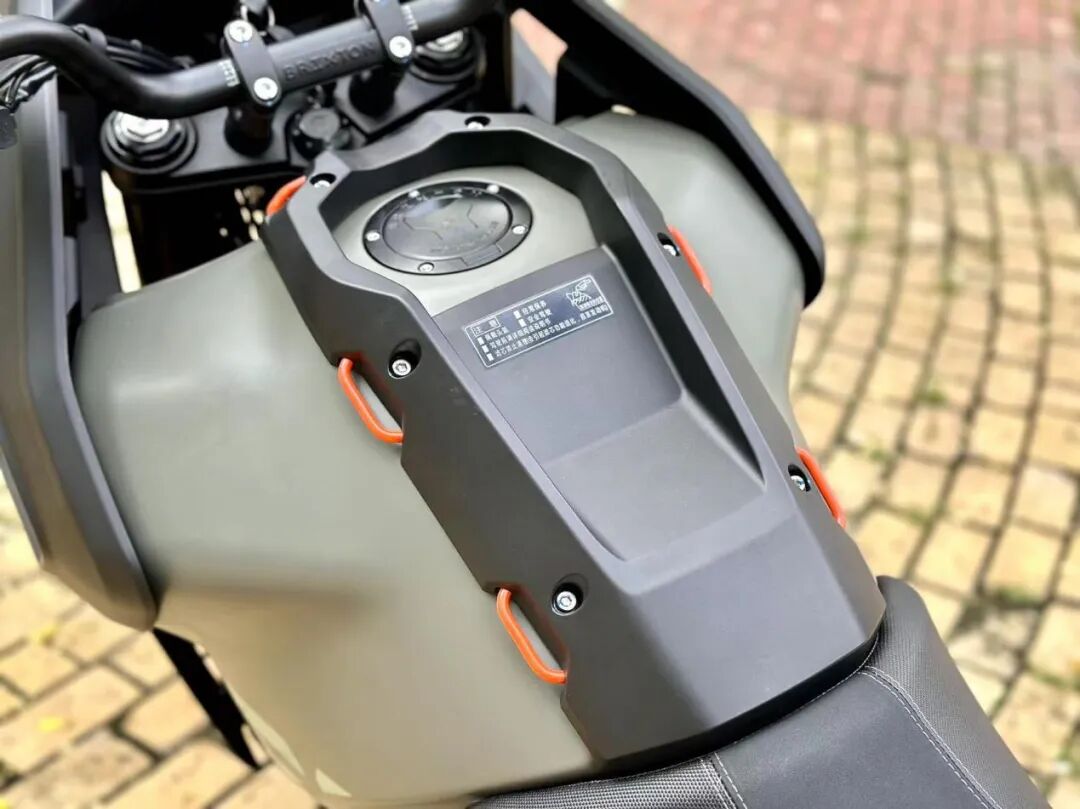 油箱中间提供了额外的载物托盘,并提供6个锚点,还是比较少见的设计,这里只有热爱摩旅的人懂。