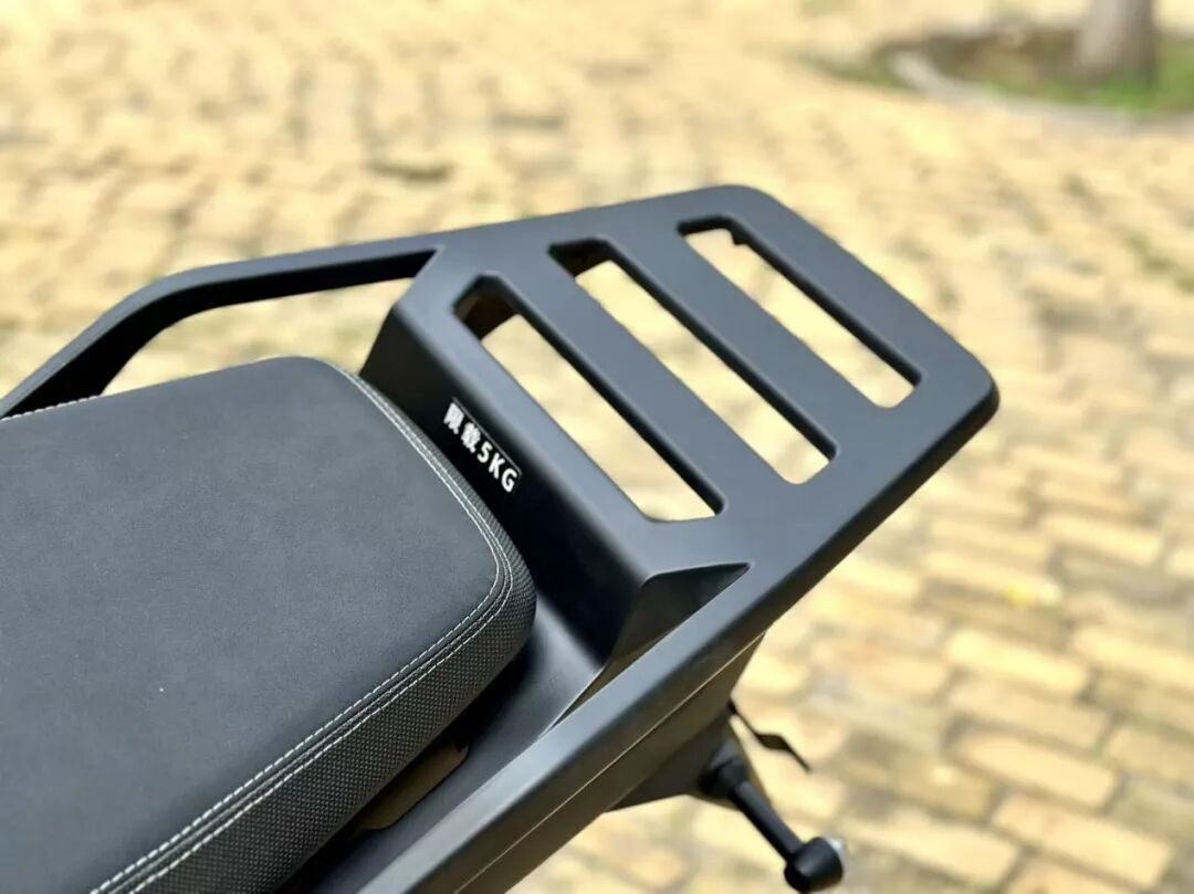 后货架采用全铝合金材质,承重5kg,镂空设计免去了单独购买尾箱支架的费用,塑料尾箱和金属尾箱底板基本都可以直接安装。